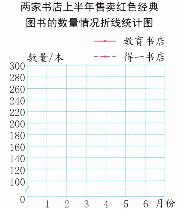 2.(1)两家书店上半年售卖红色经典图书的数量情况折线统计图