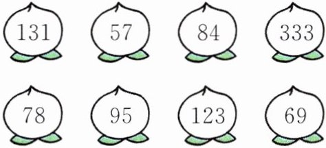 答案:1.涂里面的数是57、84、333、78、123、69的桃
