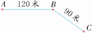 5. (泰州真题)如图所示为学校的一条景观路示意图,现在要在这条路的一侧等距离摆放菊花,$A$、$B$、$C$三处都要摆放,要使菊花的盆数尽可能少,相邻两盆菊花的距离是多少米?至少要摆多少盆?