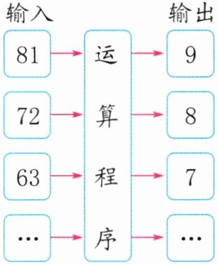 )。答案:4.405 0.2 解析:由题意可知81÷9=9,72÷9=8,63÷9=7,因此输出45时,输入的数是n=45×9=405;若输入的数是1.8,则输出的数是m=1.8÷9=0.2。