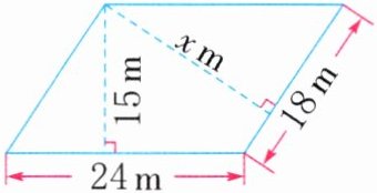 解析:根据平行四边形的面积=底×高,可列方程18x=24×15,解得x=20。