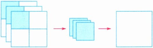 (1) 动手做:将3张面积为$1dm^{2}$的正方形纸重叠在一起,平均分成4份,取其中一份,放在相同的正方形纸中,在下图中画一画。