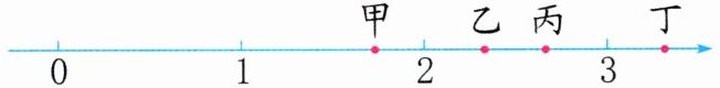 $\frac{7}{3} \approx 2.33$,由图可知乙在2和3之间且靠近2,故乙可能是$\frac{7}{3}$。