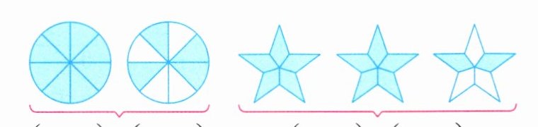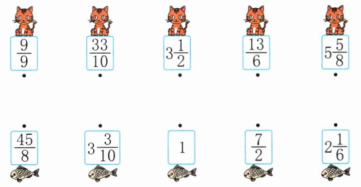1. (数形结合)用假分数表示下面各图中的涂色部分,再改写成带分数。
