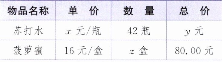 答案:5.y+80=143 y=63 42x=63 x=1.5 16z=80 z=5 解析:根据两者总价之和为合计金额,可列方程y+80=143,解得y=63,再根据单价×数量=总价,可列方程42x=63和16z=80,分别解得x=1.5,z=5。