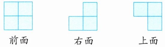6. (思维过程)小迪用几个体积是1dm³的小正方体摆成了一个物体,从不同的方向看到的形状分别如图所示,摆成的物体的表面积、体积分别是多少?