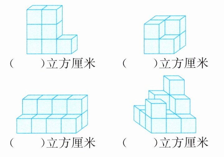 1. 下面物体都是由棱长为1厘米的小正方体搭成的,它们的体积各是多少立方厘米?