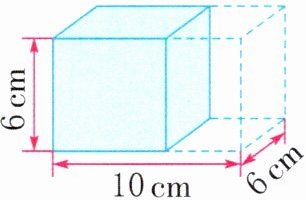 6. 把一个长10cm、宽6cm、高6cm的长方体木块削成一个体积最大的正方体木块(如图),削去部分的体积是多少立方厘米?