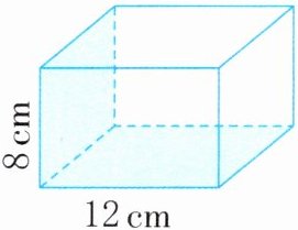 7. 如图,一个长方体的长是12cm,高是8cm,左面和下面两个面的面积和是220cm²。这个长方体的体积是多少立方厘米?