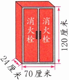 3. (社会生活)消火栓箱有不同的型号,萱萱了解到家附近的消火栓箱是双开门式的(如图),这个消火栓箱的体积是多少立方厘米?