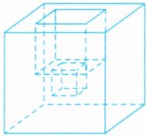 5. 如图所示为一个棱长为 4 厘米的正方体,从正方体上面正中间向下挖一个棱长是 2 厘米的正方体小洞,接着从小洞的底面正中间再向下挖一个棱长是 1 厘米的正方体小洞,最后得到的图形的表面积是多少平方厘米?