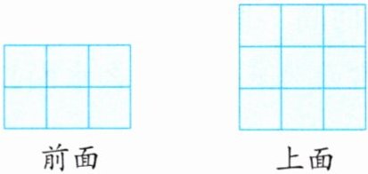 (3)小贝用棱长为 1 厘米的小正方体拼了一个较大的长方体,这个长方体从前面和上面看到的形状如图所示,小贝拼的这个长方体的表面积是(