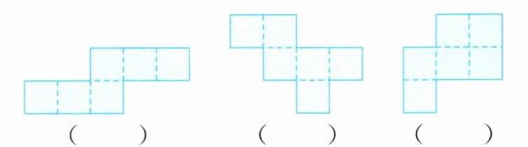 3. 下面哪些平面图形沿虚线可以折叠成正方体? 可以的画“√”,不可以的画“×”。