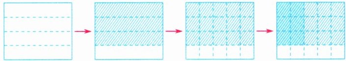 (1)小迪在探索“分数乘分数”的计算方法时,将下面的大长方形看成单位“1”,进行了如下操作,将这四步操作的意义用一个分数乘法算式表示为(