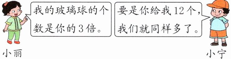 解析:小丽给小宁12个玻璃球,他们就同样多,说明小丽原来比小宁多2个12个玻璃球。