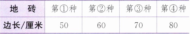 4. (生活应用)小智家的阳台从里面量长4.2米,宽1.8米。如果给阳台的地面铺上正方形地砖,选择下表中的第(