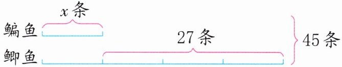 解:选择信息:鲫鱼和鳊鱼共45条,鲫鱼比鳊鱼多27条。