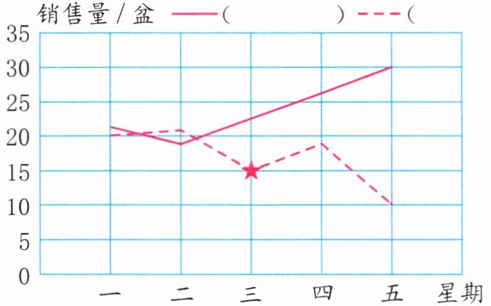 (2)有一种多肉植物星期三的销售量看不清了,其销售量应该是(