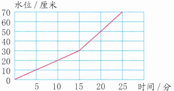 答案:4.(70 - 30)÷(25 - 15)=4(厘米) 解析:从题图中可以看出,15~25分钟时间段内两根进水管同时打开,水位从30厘米上升至70厘米。用水位上升的高度除以两根进水管同时打开的时间即可。