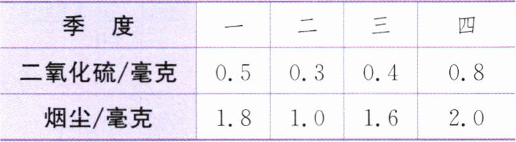 2. 某地2024年四个季度平均每立方米空气中的二氧化硫、烟尘的含量如下表。
