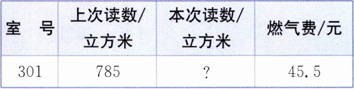 4. 笑笑家6月的燃气情况如下表,燃气费单价是每立方米3.5元,本次读数是多少立方米?