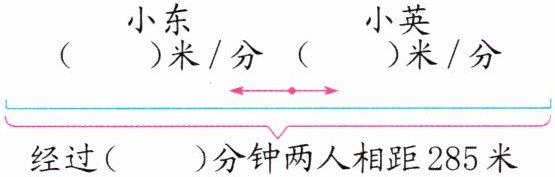 (2)小东、小英从某地同时出发,相背而行,小东每分钟走50米,经过3分钟两人相距285米,小英每分钟走多少米?