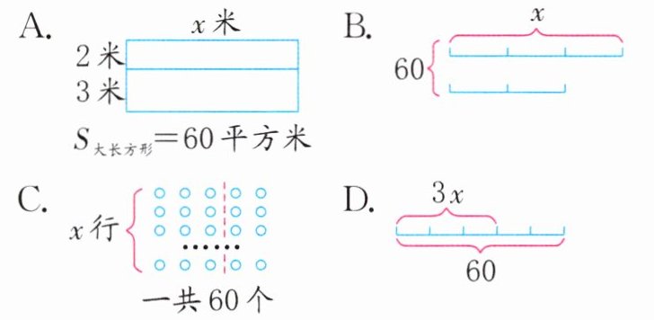 (2)(徐州邳州)下面不能用方程“$2x+3x=60$”来表示的是(