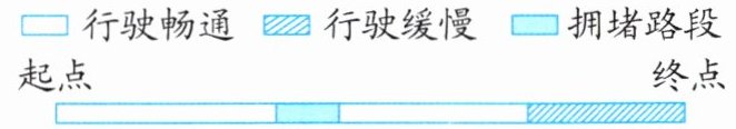 6. (苏州张家港)王阿姨开车去某地开会,她用导航查看路况,示意图如下。其中行驶缓慢路段占全程的$\frac{1}{4}$,拥堵路段占全程的$\frac{1}{10}$。