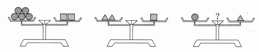 4. 新趋势 数形结合 如左下图,根据前面两幅图,可以判断第三幅图中天平的(