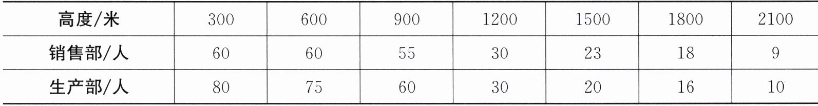 )米时,两个部门登山人数都发生锐减。(2 分)4. 销售部有(