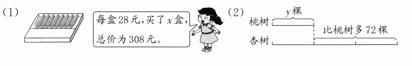 答案:4. (1) 28x=308 x=11 (2) 3y - y=72 y=36