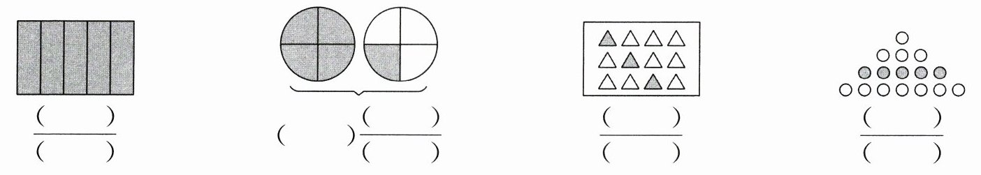 1. 新趋势 数形结合 用分数表示下面各图中的涂色部分。