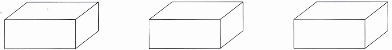 3. 把一个长 24 cm、宽 18 cm、高 10 cm 的长方体木块切成两个同样大的长方体,有几种不同的切法?请你在下图中表示出来,并算出每种切法的表面积增加了多少平方厘米。(6 分)