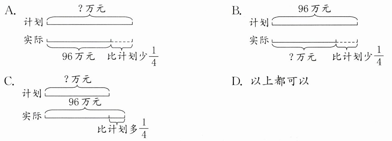 3. 下面的问题中,可用算式“$1 - \frac{1}{4} = \frac{3}{4}$,$96×\frac{3}{4} = 72$”来解决的是(