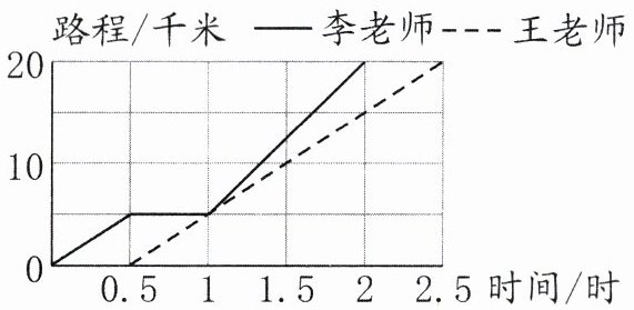 5. 新情境 生活应用 李老师和王老师骑自行车从学校到 20 千米外的森林公园,他俩骑行的路程与时间的关系如图所示。