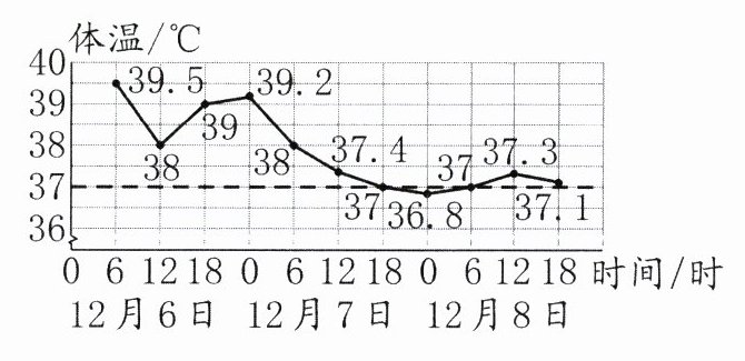 )时,淘淘的体温一直在下降。人的正常体温约为 37℃,淘淘的病情在(好转