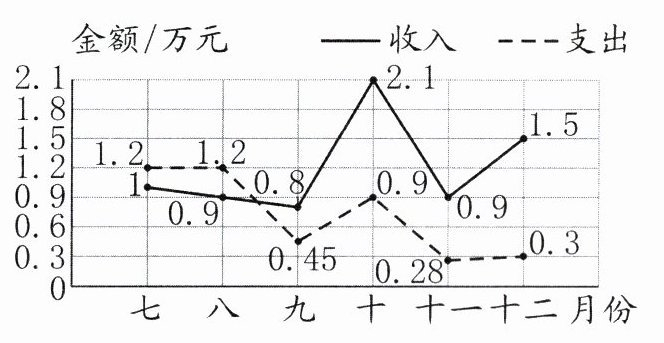 )月份的收入减支出,结余最多。(2)笑笑家下半年共收入(