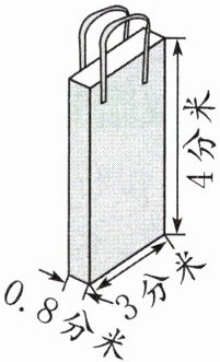 1. 制作一个长3分米、宽0.8分米、高4分米的材料袋(如图,损耗与接头处忽略不计)。
