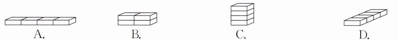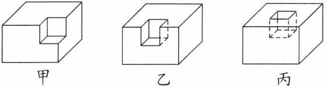 答案:4.C 解析:根据题图可知,甲挖去一个小正方体后,剩下部分的表面积与原来长方体的表面积相等。乙挖去一个小正方体后,减少了2个小正方形的面积,却多了4个小正方形的面积。丙挖去一个小正方体后,少了1个小正方形的面积,却多了5个小正方形的面积。