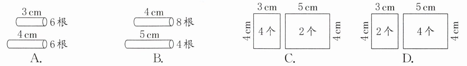 4. 下面选项提供的材料正好能拼成长方体模型的是(