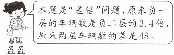 2. 新趋势 说理表达 某停车场负一层的车辆数是负二层的 3.4 倍。将负一层中的 48 辆车移至负二层后,这两层的车辆数刚好相同。原来这两层各停了多少辆车?