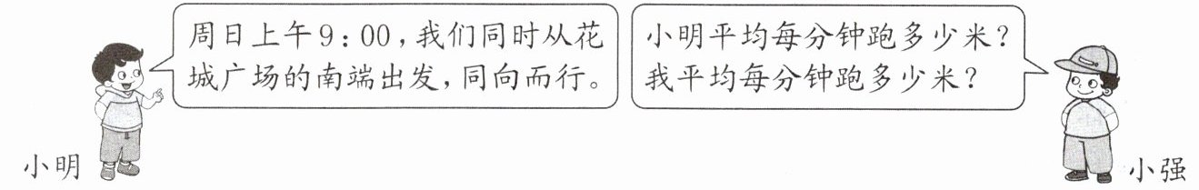 (2)解:设小强平均每分钟跑$x$米,则小明平均每分钟跑$1.2x$米。 9时5分-9时=5分