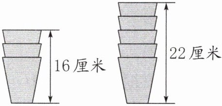 5. 新素养 推理意识 如图,3个杯子叠起来高16厘米,5个杯子叠起来高22厘米。