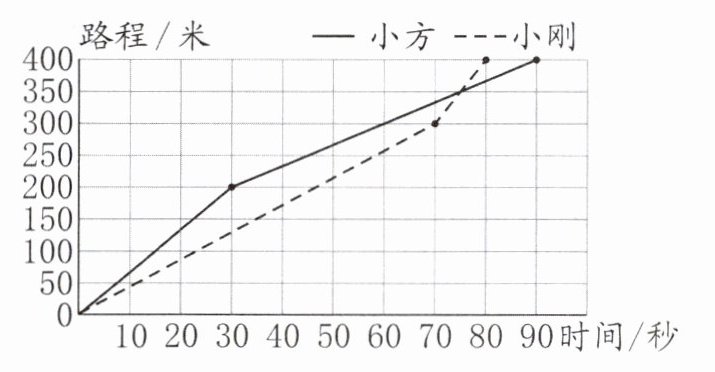 2. 右上图是小方和小刚400米赛跑情况的折线统计图。