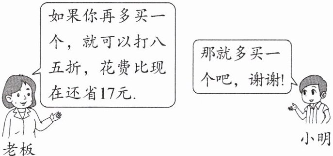 13. (赤峰中考)某校开展校园艺术节系列活动,派小明到文体超市购买若干个文具袋作为奖品.这种文具袋标价每个 10 元,请认真阅读结账时老板与小明的对话: