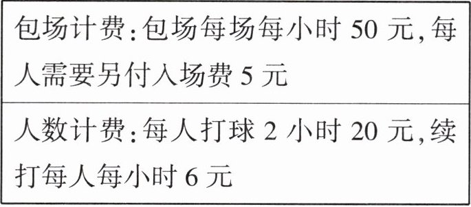 12. 某乒乓球馆有两种计费方案,如表所示.李强和同学们打算周末去此乒乓球馆连续打球 4 小时,经服务员测算后,告知他们包场计费方案会比人数计费方案便宜,则他们参与包场的人数至少为
