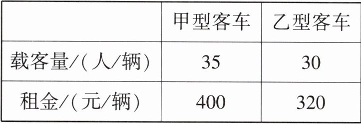 6. (荆州中考)为拓宽学生视野,促进书本知识与生活实践的深度融合,荆州市某中学组织八年级全体学生前往某研学基地开展研学活动.在此次活动中,若每位老师带队14名学生,则还剩10名学生没老师带;若每位老师带队15名学生,就有一位老师少带6名学生,现有甲、乙两种大型客车,它们的载客量和租金如表所示: