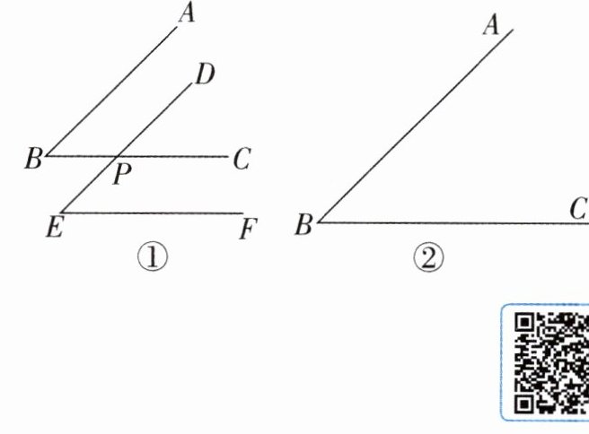 12. 新趋势 过程性学习 已知$∠ ABC$,画$∠ DEF$,使$DE// AB$,$EF// BC$,且$DE$交$BC$于点$P$。探究$∠ ABC$与$∠ DEF$有怎样的数量关系。