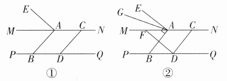 (2)如图②,若AB//CD,AE⊥AB,AG平分∠EAM,过点D作DF⊥CD交MN于点F,求证:2∠BAG=∠FDQ;