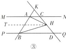 如图 ③,当点 H 在点 C,D 之间时,过点 H 作 HT // MN,则 HT // MN // PQ,